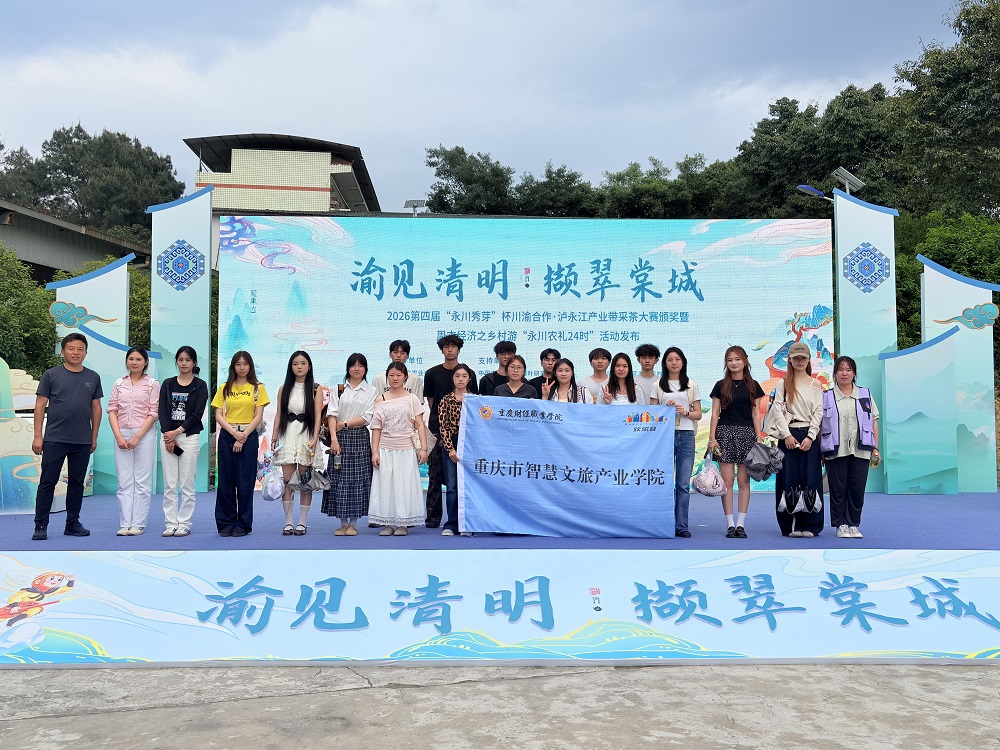 在永川花果山村采茶大赛及“永川农礼24时”活动中,旅游管理专业学生为茶香集市和徒步挑战提供引导讲解,推广“永川秀芽”品牌;商务英语专业学生为茶企提供双语接待,助力农旅产品开拓市场;融媒体学生策划短视频放大活动影响力。